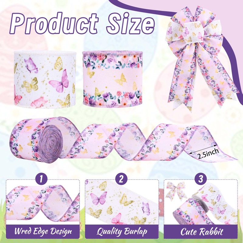 - Spring Wired Ribbon:You will receive 2 rolls of spring wired ribbons, the ribbons are printed with butterflies and floral patterns, perfect for spring decorating, meet your spring decorating needs