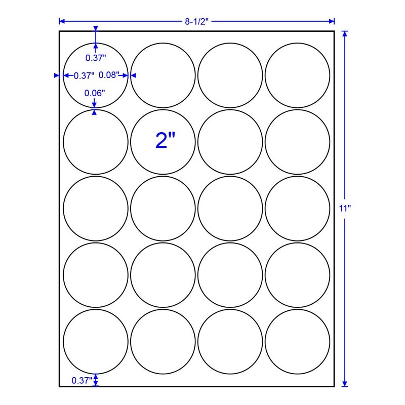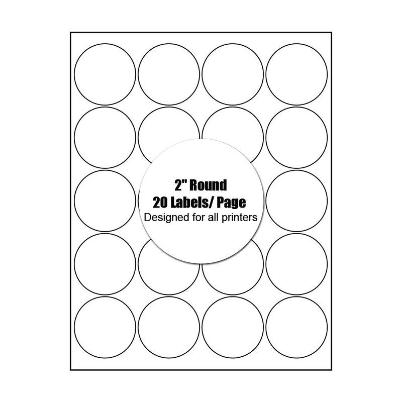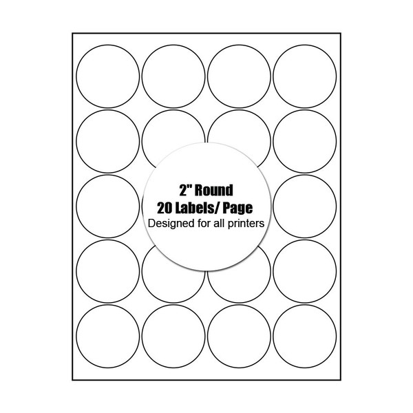 2" Round Circle Labels for Inkjet & Laser Printers, 20 Labels per Sheet- 25Sheets=500 Labels.