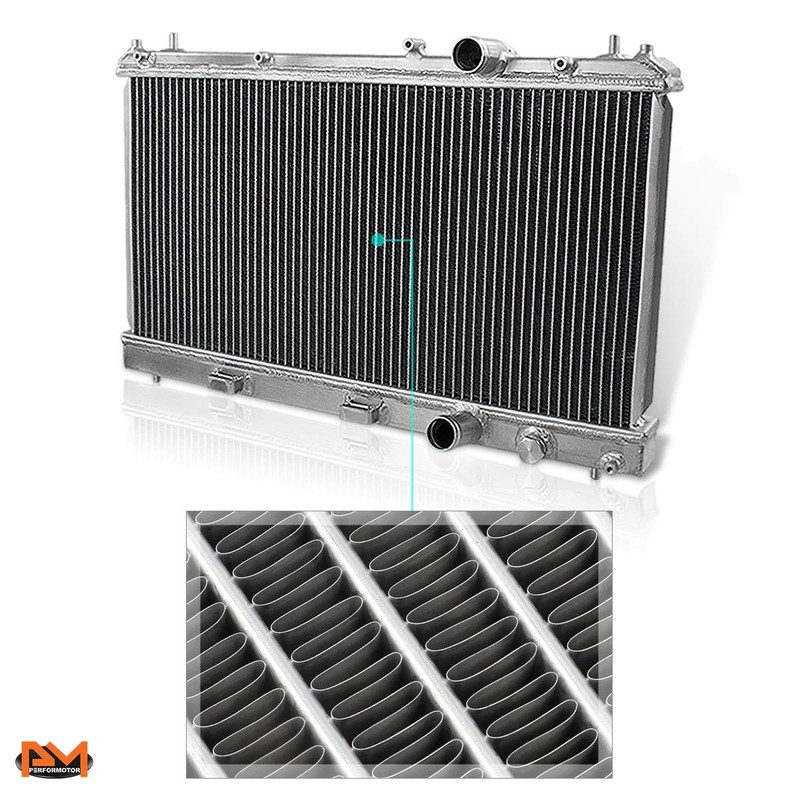 This Aluminum Radiator is designed to provide maximum cooling efficiency to prevent premature engine failure. Its light-weight, and high-heat transferring aluminum features a tube and fin design that, dramatically increases surface area that enables the heat to dissipate more efficiently. This Aluminum Radiator is at least 40% more efficient than stock ones. Most importantly, it has a much higher capacity for coolant than stock ones, which means that your cooling system will be more efficient and will be more resistant to temperature surges in racing applications.