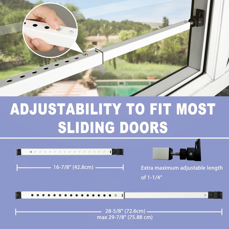 - Windows & Door Dual Use: As it can be extened to 29-7/8" at max., will fit most vertical or horizontal sliding windows and narrow sliding doors. Optional to drill, easily have it installed and removed in seconds