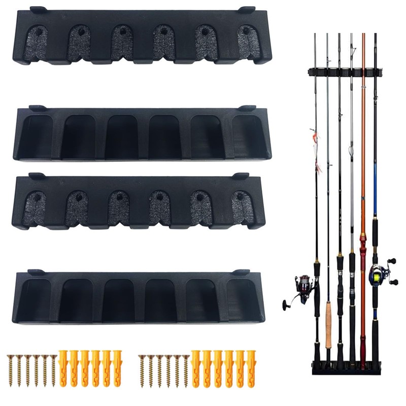 - Great Value: 2 sets of rod holders can hold 12 rods at a time. Each fishing rod bracket can accommodate 6 fishing rods. You can keep your fishing rods or billiard cues unused at home organized. As a collector, a fishing rod holder can be a great display stand to show off your collection to your friends.