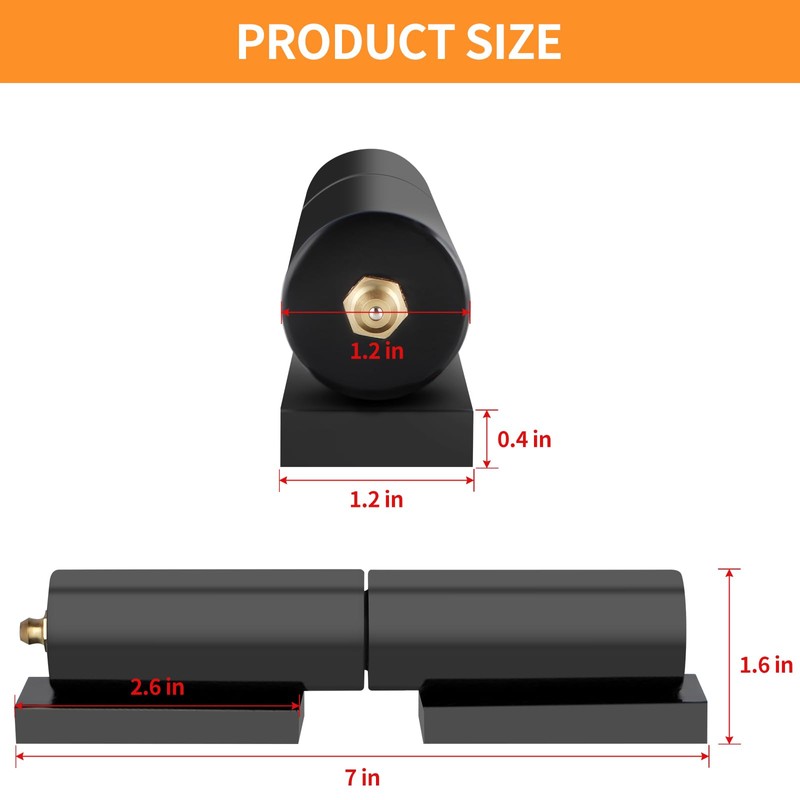 - Product Size: Overall hinge size is 7 x 1.2 x 1.6 in (L x W x H), each welding plate measures 2.6 x 1.2 x 0.4 in (L x W x H), barrel diameter is 1.2 in