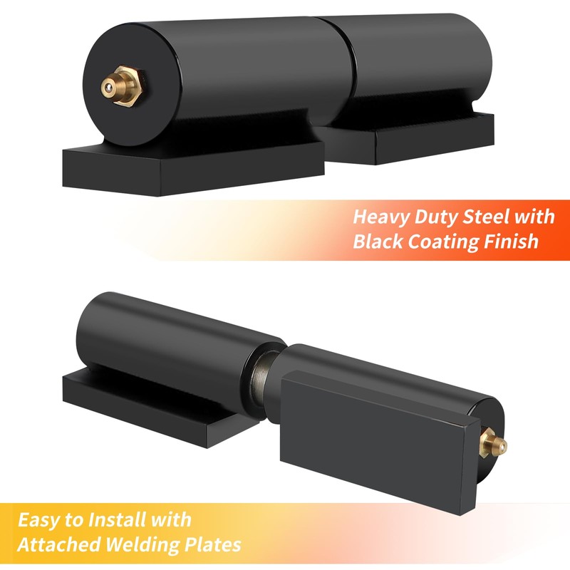 - Weld on Install: With strong welding plates, it is easy to mount the hinges on your gate, we recommend to remove the coating on the plate before welding