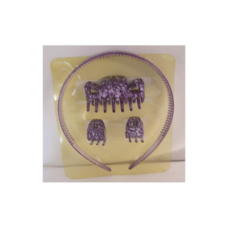 2 Sets Plastic Headbands with Matching Hair Clips Orange and Purple