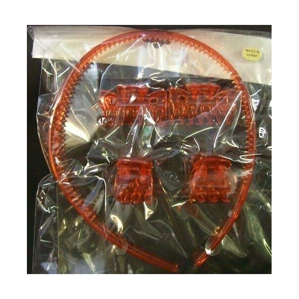 2 Sets Plastic Headbands with Matching Hair Clips Orange Color