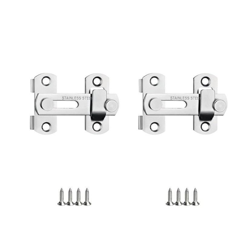 2 sets safety latches for doors push lock sliding inside stainless steel latch hasps apartment bedroom outward jam lock (Horizontal insertion)