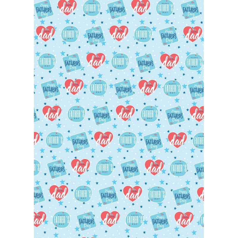 2 Sheets Father's Day Blue And Red Star Design Wrapping Paper Dad Daddy Giftwrap (PA)