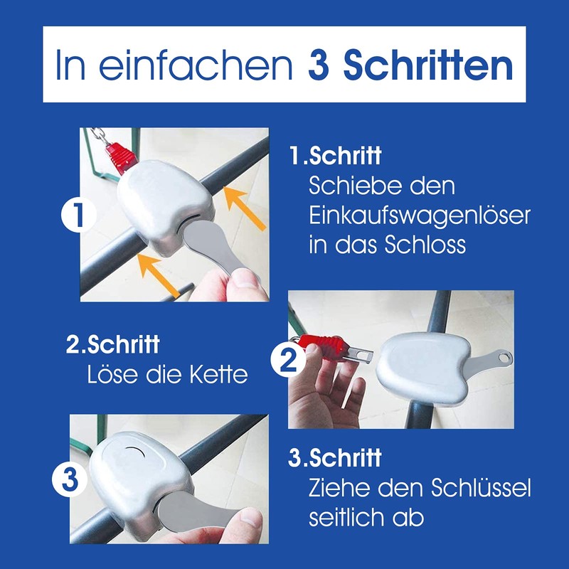 • Easy to use: remove the shopping cart and remove the key - suitable for all front loading shopping trolleys.