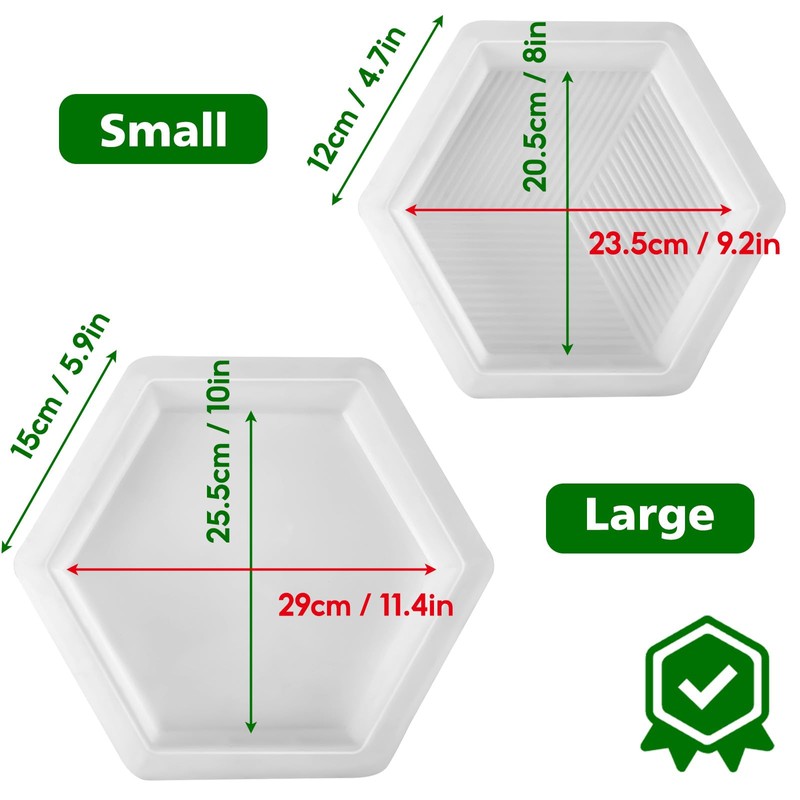 - 🌻This versatile 2-pack includes large (5.9in side) and small (4.7in side) hexagonal concrete molds, perfect for creating unique garden pathways. The contrasting sizes allow for creative layouts, enhancing your outdoor decor. Ideal for DIY enthusiasts looking for durable, reusable path makers.