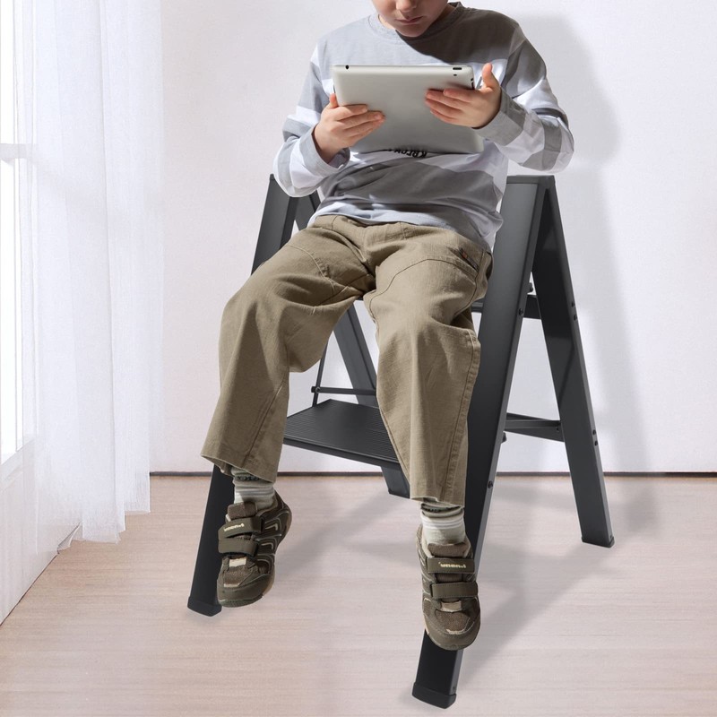 - Multifunctional: The suitable height and the wide pedal of the folding ladder make it suitable for use as a chair, you and your family can sit on it to read books, listen to songs, and enjoy a happy time with your family. You can put it next to your bed or sofa as a shelf.