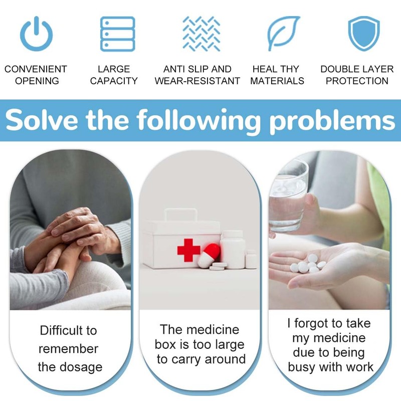- 🎉【Perfekt für die ganze Familie】: Ob für Senioren, Erwachsene oder Kinder – diese Tablettenbox ist für jeden geeignet! Sie hilft, die tägliche Einnahme von Medikamenten zu erleichtern und sorgt dafür, dass niemand seine Dosen vergisst. Machen Sie das Gesundheitsmanagement für sich und Ihre Lieben einfacher und stressfreier mit dieser praktischen und vielseitigen Medikamentenbox, die in jedem Haushalt unverzichtbar ist.