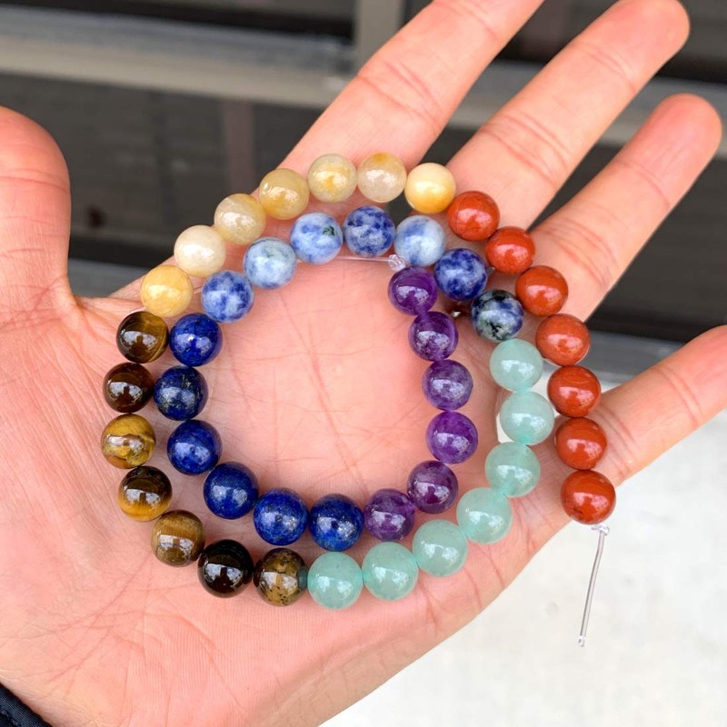 - (2 Strands, 86 to 92pcs total, ~ 15 inch Per Strand, 43 to 46pcs beads Per Strand), Stone/material: Mutiple gemstone (Amethyst, Lapis Lazuli, Aventurine, Tiger's Eye, Yellow Jade, Red Jasper and Chinese Sodalite) to All natural stone, no dyed, no color enhanced