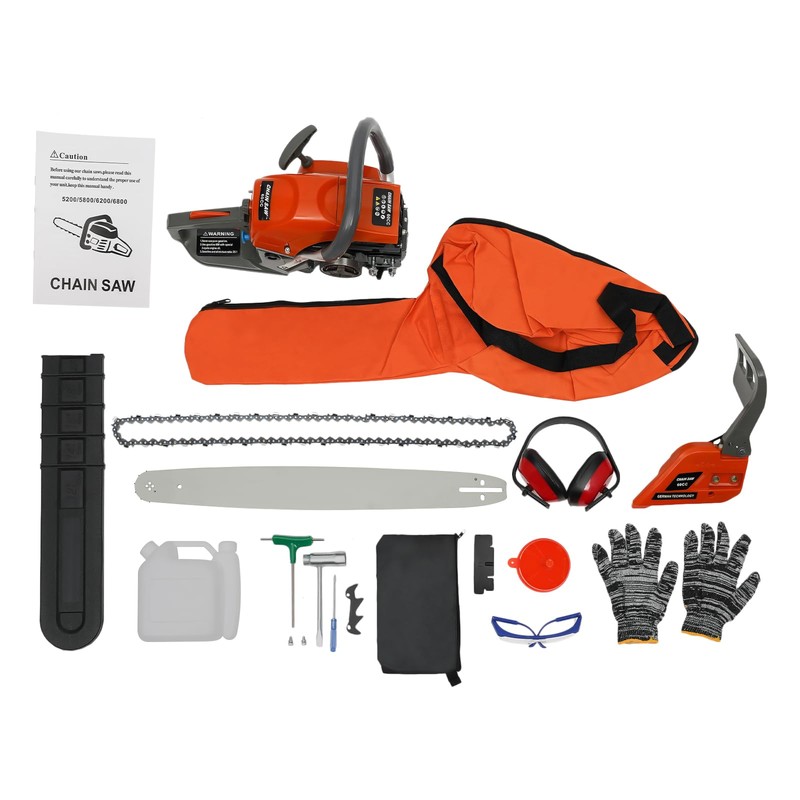 The gas chainsaw is suitable for garden pruning, forest logging, chopping wood, bamboo harvesting, timber making, ice cutting, tree pruning, clearing land, preparing firewood or cleaning up, outdoor wood cutting, for home, garden, ranch, and farm use.