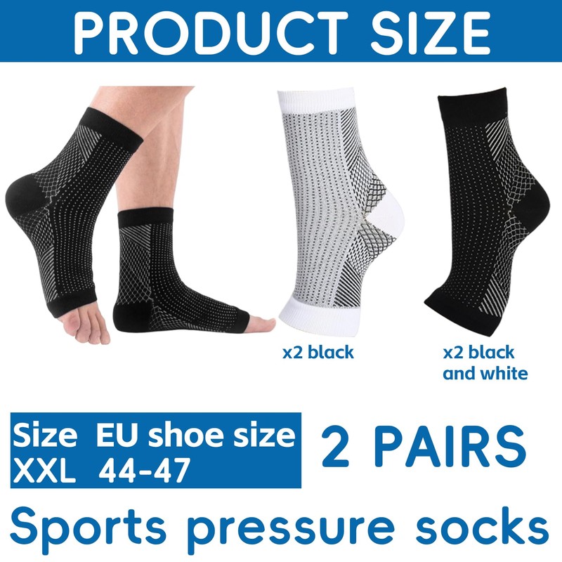 2 Stück Compression Socks,Kompressions-Socken,Kompressionssocken für die Nacht,Kompression Socken für Orthopädische Plantar (DE/NL/SE/PL, Alphanumerisch, XXL, Regular, Regular, 1, Schwarz und Weiß)