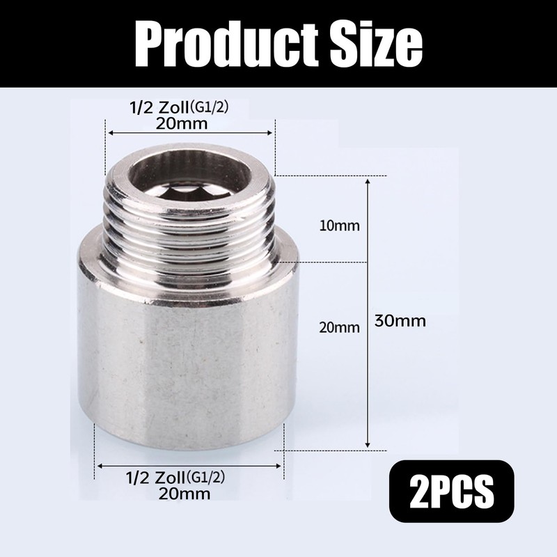 - 1. Der Käufer erhält eine 2 - Stück - Packung Hahnverlängerungen im 1/2 - Zoll - Format, die ideal für die Verlängerung von Wasserhähnen, Duschköpfen, Absperrhähnen, Eckventilen und anderen Armaturen sind.