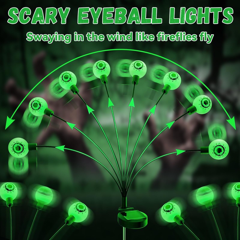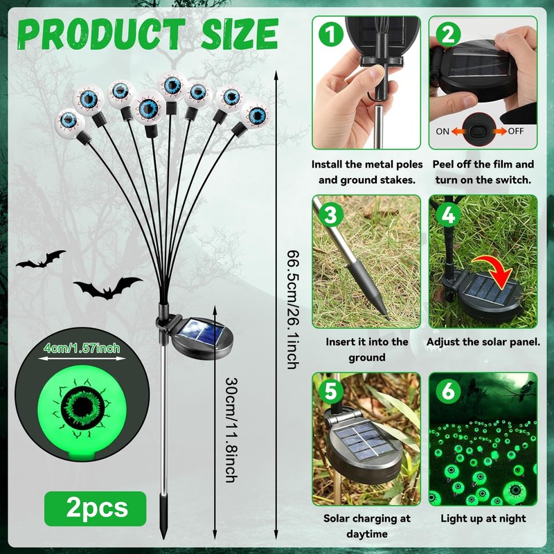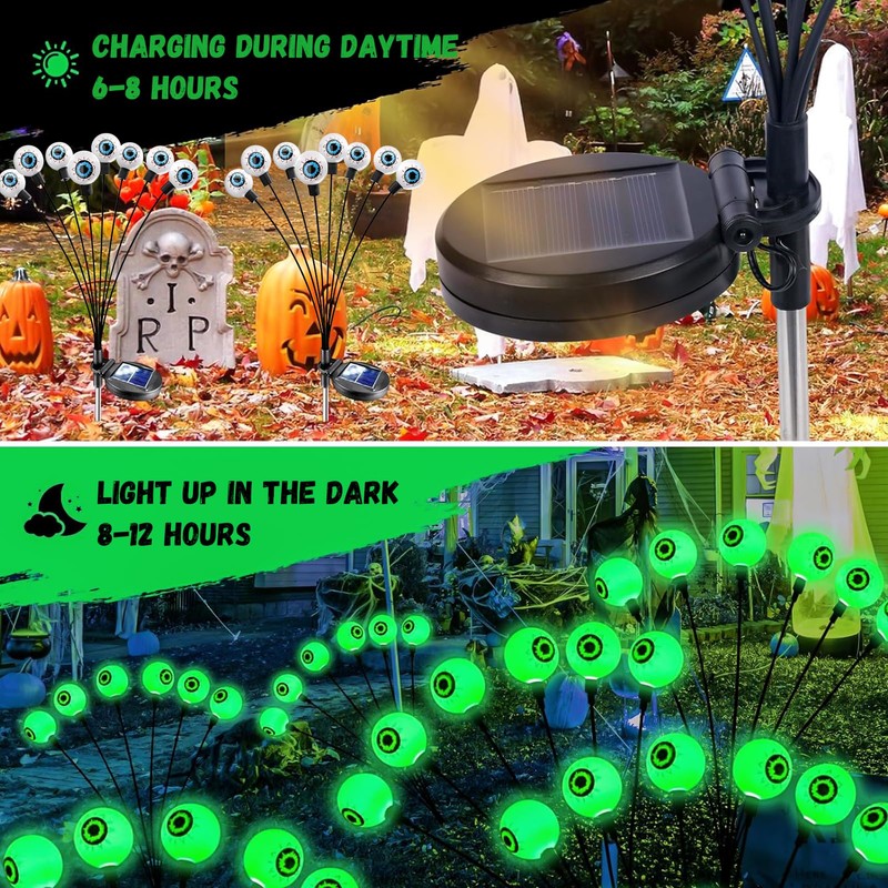 - Bestes Halloween Geschenk:Sie erhalten 2 Halloween solar gartenleuchten für außen, jedes mit 8 LED Augäpfeln. Halloween Eyeball Lichter sind geeignet für Halloween, Karneval, Fasching, Abschlussball, ideal für Ihre Halloween gruselige Dekorationen. Komm und dekoriere dein verrücktes Halloween