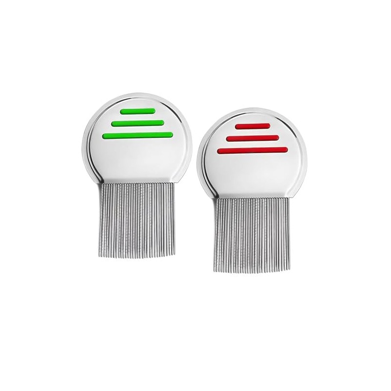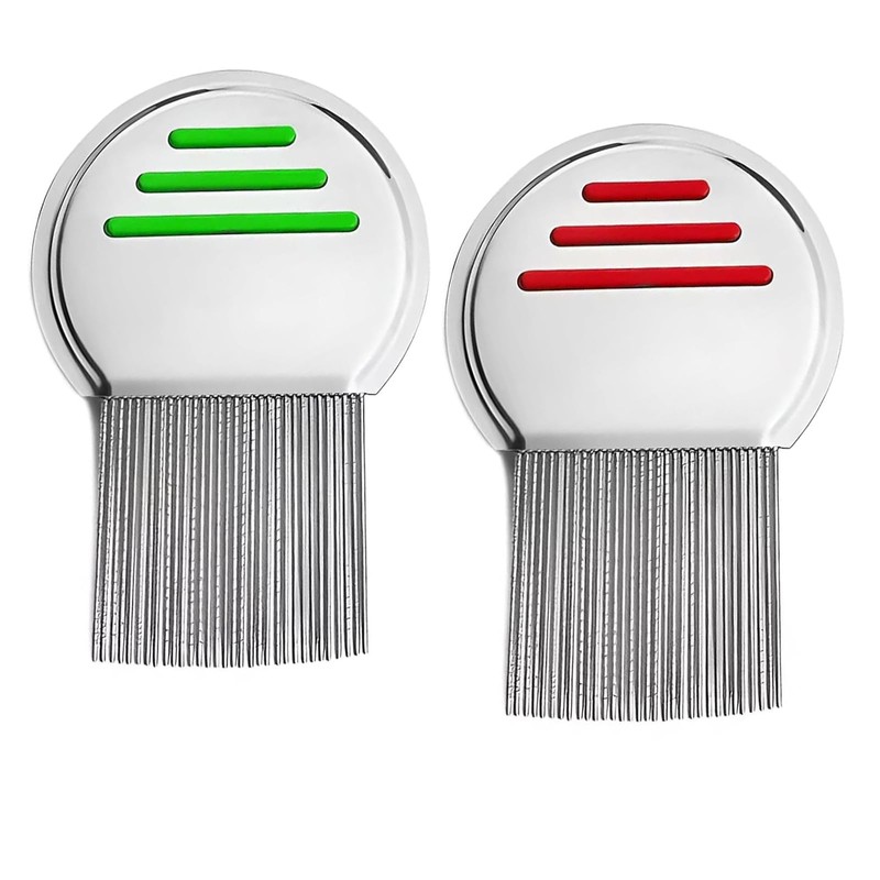 2 Stück Läusekamm,Edelstahl extra fein Läusekamm,Für Baby Kinder Erwachsene und Haustier(Rot und Grün)