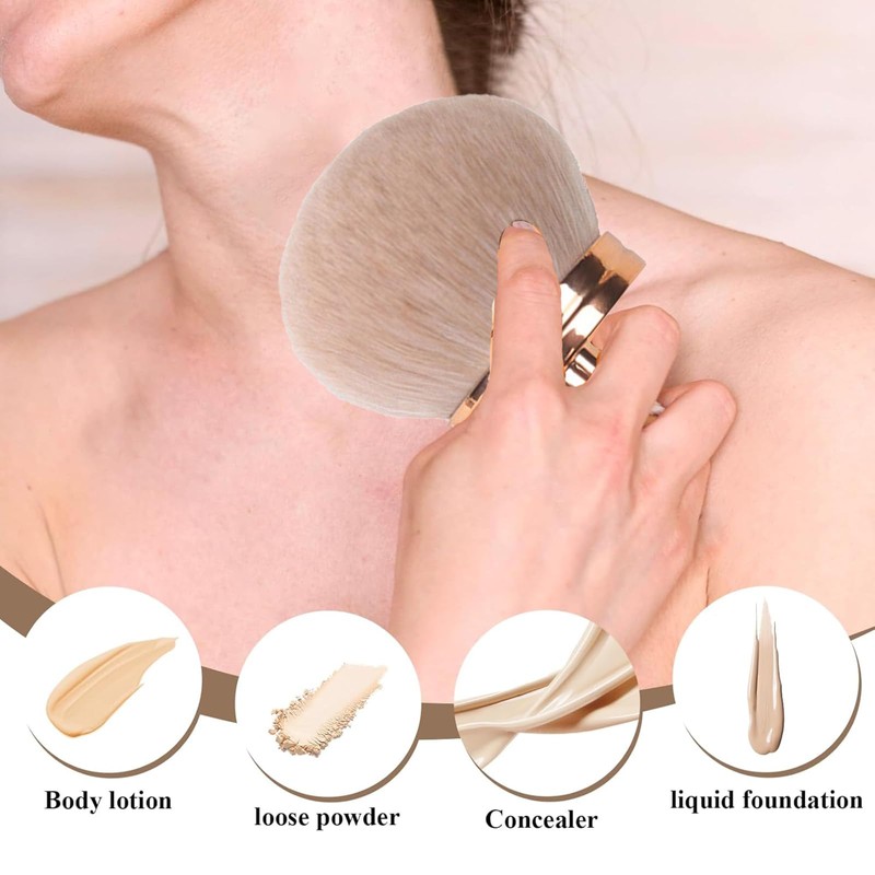 Der Großer Make Up Pinsel Für Körper liefert in Sekundenschnelle Ganzkörperanwendung.Gutes, makelloses Make-up für Puder, Flüssigkeit, Concealer, Creme, Rouge, Foundation, Kontur und Körperschimmer. Sie müssen nur eine kleine Menge Kosmetik auftragen, um die besten Ergebnisse zu erzielen.