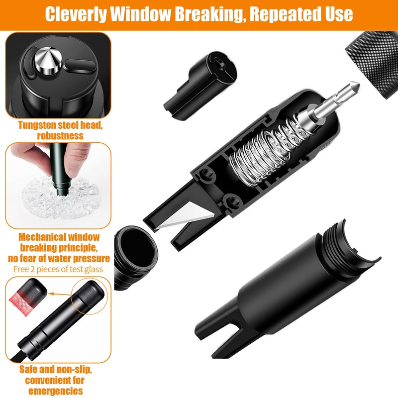 • 【Vielfältige Einsatzmöglichkeiten】Mit diesem Fensterbrecher- und Sicherheitsgurtschneider-Set können Fenster aus gehärtetem Glas schnell zerbrochen werden und es kann auch unter Wasser verwendet werden, was es zu einem vielseitigen und zuverlässigen Werkzeug für die Flucht aus dem Auto macht. Es ist ein wesentlicher Bestandteil der Sicherheitsausrüstung jedes Fahrzeugs.