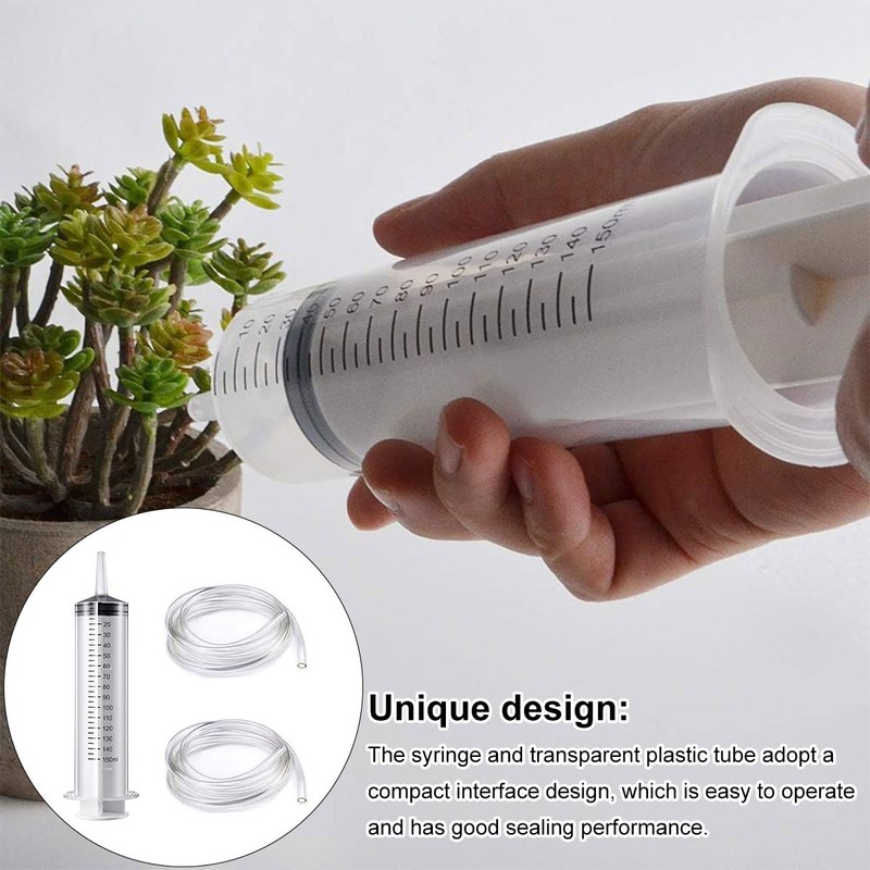- Material: 150ml Spritze * 2 Stück, 1,3 m Kunststoffrohr * 2 Stück, Endkappenkonverter * 1 Stück. Die Spritze besteht aus Kunststoff und ist langlebig, wasserdicht und wiederverwendbar.