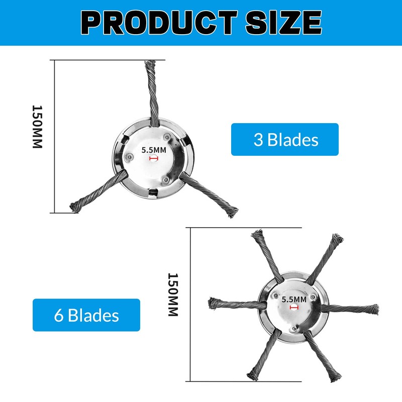 - 【2 Stück Set】: Zwei hochwertige Bürstenköpfe aus Stahldraht –Set A: eine mit 6 Köpfen und eine mit 3 Köpfen. Set B : zwei mit 6 Köpfen.Diese Unkrautbürste für Rasentrimmer ist mit einem 5 mm Innenloch und einem Durchmesser von 150 mm ausgestattet, 2 Packungen sind bereit für Sie zu ersetzen. Ideal für unkrautbürste freischneider oder als Ersatzbürsten für Rasentrimmer.