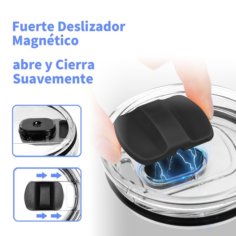 - 【Deslizador Magnético】Esta tapas para termos de 30 oz cuenta con un deslizador magnético negro que es fácil de quitar y se abre y cierra suavemente sin atascarse. Puedes beber directamente o utilizar una pajita cuando bebas, lo que puede evitar eficazmente que la bebida se derrame y evitar que te lastimes.