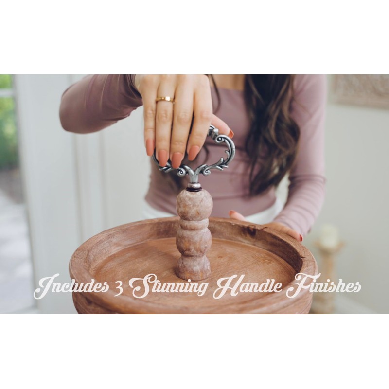 2 Tiered Tray Stand [Includes 3 Changeable Handles] - Stunning Coffee Table Tray or Rustic Cupcake Stand, Beautiful Wooden Serving Tray, Rustic Home Decor for Kitchen, Tiered Serving Tray (Brown)