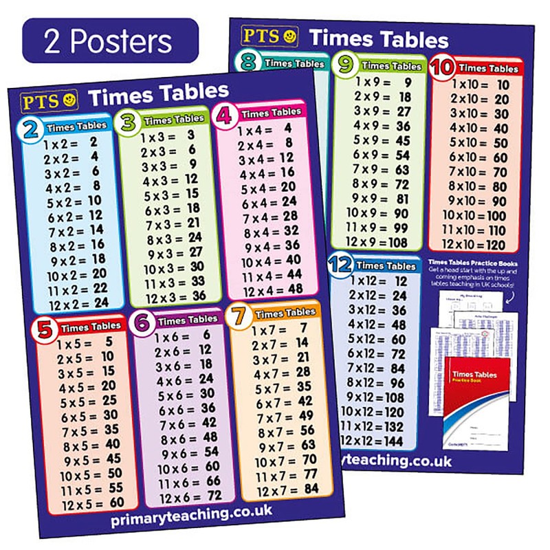 2 Times Tables Chart Multiplication Childrens Pupils Teachers Classroom Display Posters A2 Primary Teaching Services