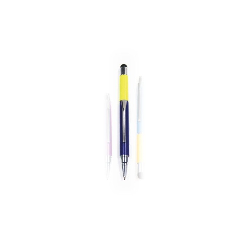 - Linear slim stylus and pen in one! Bright enamel barrels in complementing color with chrome accents.