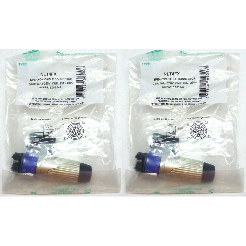 (2) Two Original NEUTRIK NLT4FX Female 4 Pole SpeakON Heavy Duty Cable Connector
