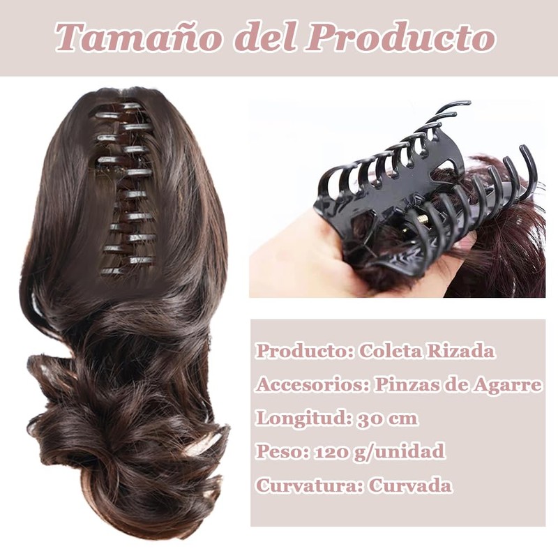 2 Unidades Cola de Caballo Rizada Extensión del Pelo, Extensión Cola Rizado Caballo de 12 Pulgadas, Clip Garra Sintético, Fácil Instalar y Manejar el Pelo, Adecuado para Mujeres(Marrón,4#)