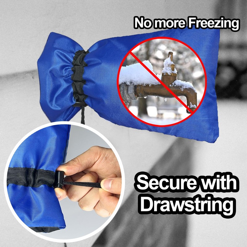 - Protección contra congelación: el algodón aislante grueso y el revestimiento resistente al agua ayudan a proteger su llave exterior durante el duro invierno. Evita la congelación de tuberías del llave, estalladuras y soplados, lo que puede causar costosas reparaciones.