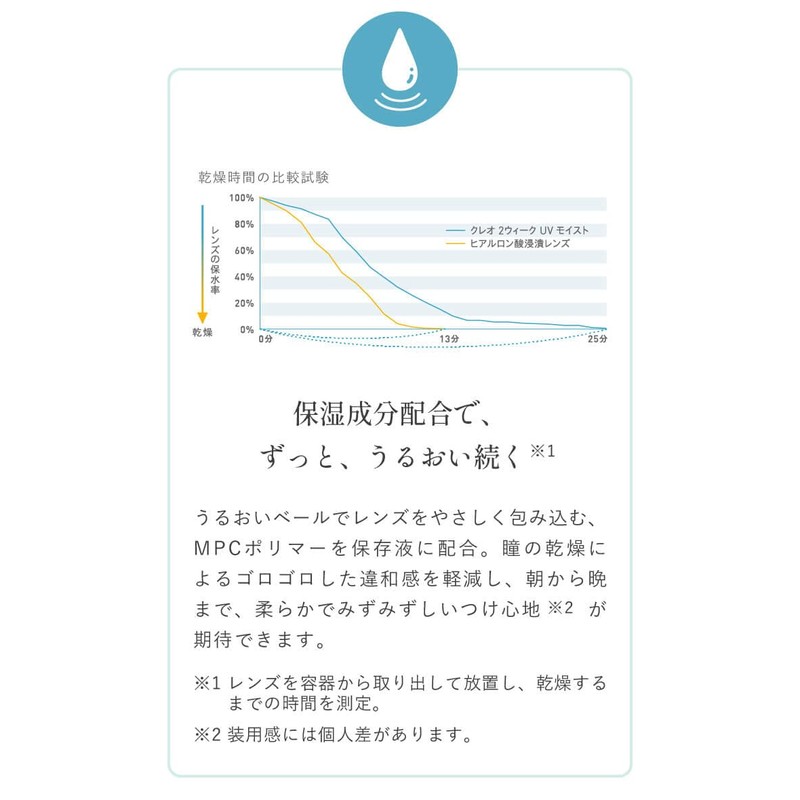 クレオ 2ウィークUVモイスト 6枚 1箱 (2週間使い捨て コンタクトレンズ )【BC】8.7 【PWR】-3.25