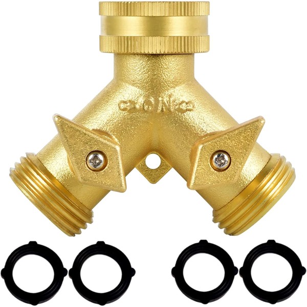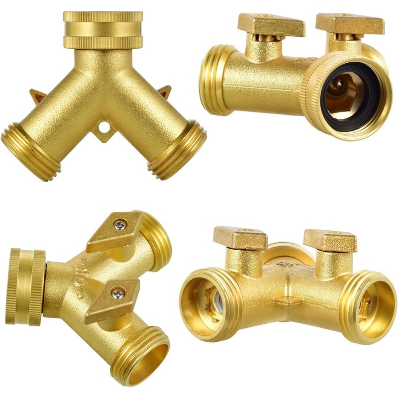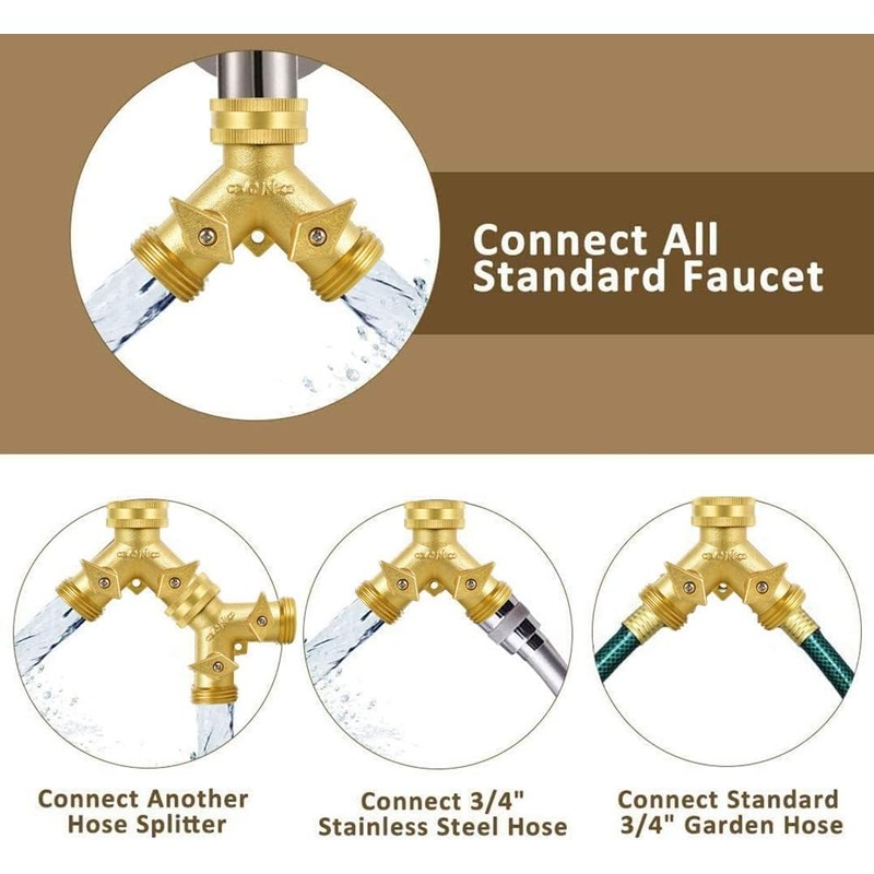 • 【Simple to Install】Fit for Standard 3/4 diameter connection. Our brass hose splitter is designed to easily accommodate all standard hoses, with the main connector creating a tight seal on water outlets with either metal or plastic threading. We support 1 year replacement and 30 days moneyback warranty.