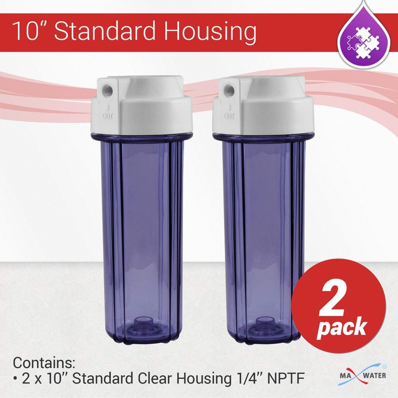 2 x 10" Reverse Osmosis water filter Clear housing 1/4" NPT with double O ring