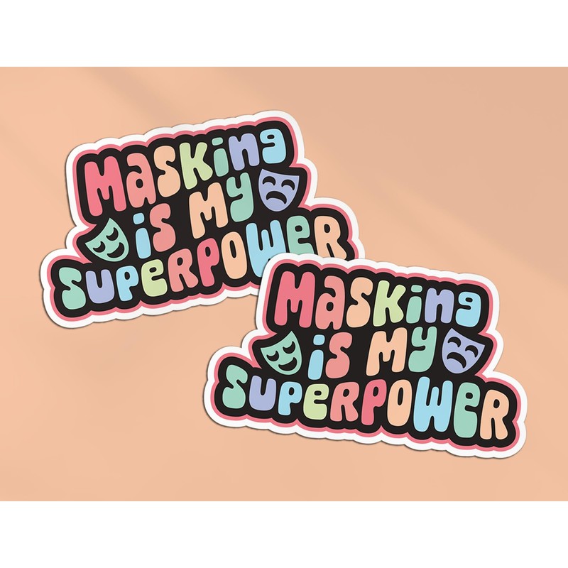 2 x 10cm Masking Superpower Vinyl Stickers - Neurodivergent Awareness Autistic Autism ADHD Invisible Hidden Disability Decal Sticker #82460