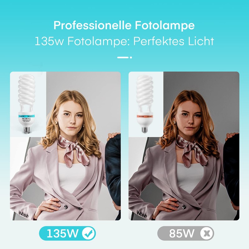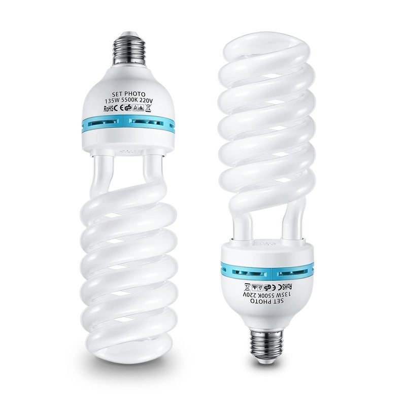 2 x 135 W Spiral Daylight Lamp, Photo Lamp, 5500 K, E27 Socket, Energy Saving Lamp, Studio Light for Softbox Photography in Photo Studio
