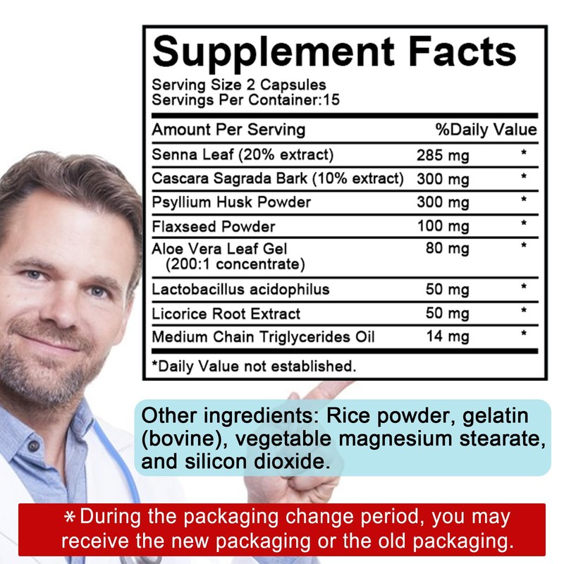 - [ Natural Ingredients ] - Each capsule of the supplement contains a blend of potent natural ingredients renowned for their cleansing properties, such as senna leaf, cascara sagrada, psyllium husk, and more.