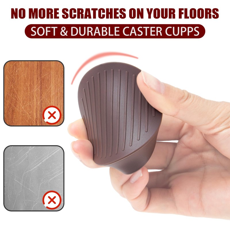 - PREMIUM QUALITY: Trust in the quality and reliability of Komokeru Caster Cups. These furniture pads serve as a protective barrier, preventing scratches, indentations, and marks on your flooring.