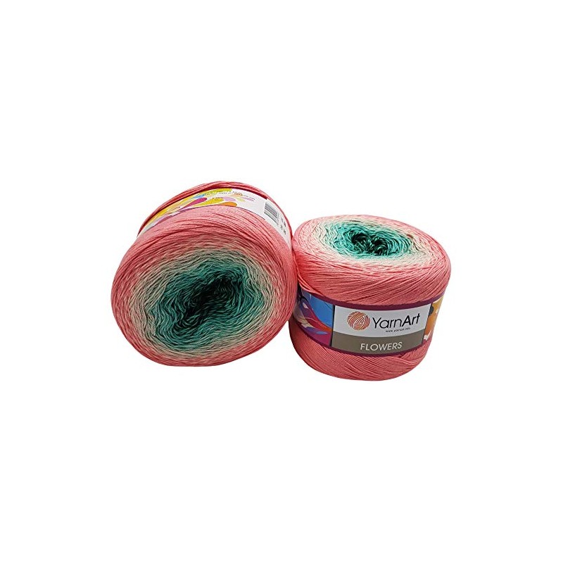 2 x 250 g Ilkadim Export Flowers Bobbel Wool, Multicoloured, 55% Cotton, 500 g Bobble Knitting Wool with Colour Gradient (Pink, White, Green 292)