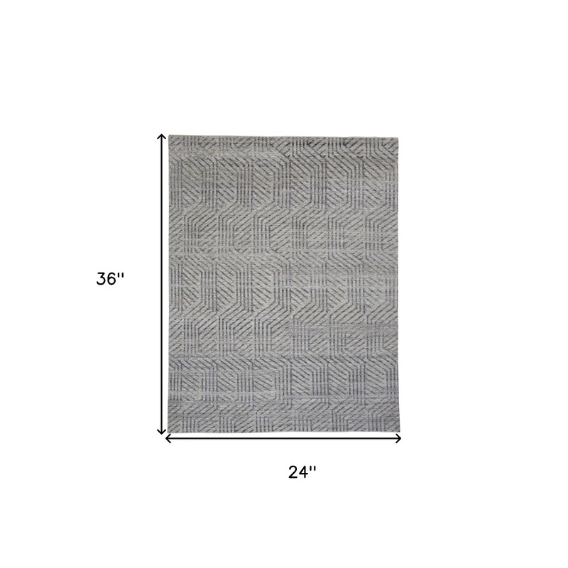 2' X 3' Tan and Gray Wool Geometric Hand Knotted Area Rug
