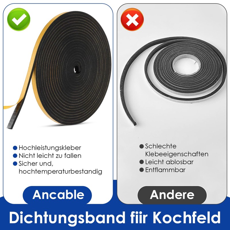 2 x 5 m sealing tape, sealing tape, source tape, ceramic hob sealing tape, ceramic hob frame, sealing tape, sink sealing tape, heat resistant hob seal, with small scraper