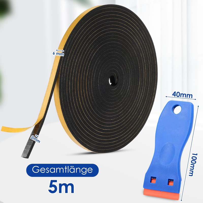 - High-quality sealing tape: This self-adhesive sealing tape is made of high-quality EVA and CR foam rubber, which is known for its excellent insulation properties. It provides an effective solution for sealing door and window joints, protects against wind, rain and noise and thus contributes to a more comfortable indoor climate.