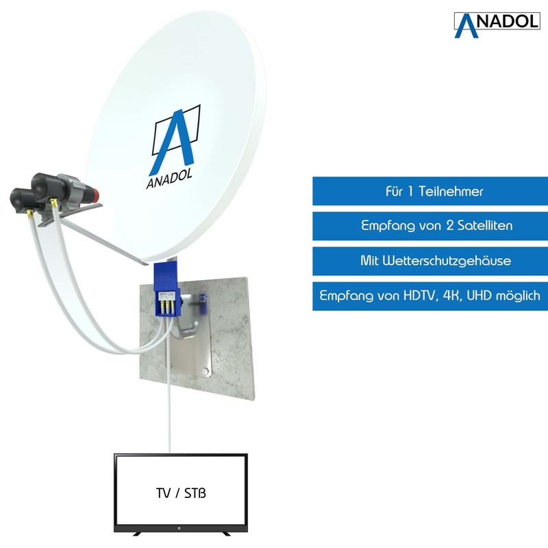 2 x Anadol 2/1 DiseqC Switch - 2-in-1 Switch for Satellite Receiver, for Receiving 2 Satellites for 1 Receiver, Full HD, 4K UHD, LNB Splitter + 6 x Gold-Plated F-Connectors + Cable Ties + Dowel Screws