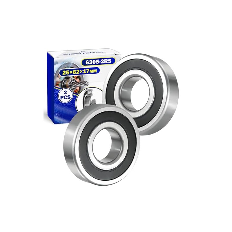 - Size – 2 ball bearings 6305 2RS are equipped with two rubber seals. Deep groove ball bearing inner diameter 25 mm, outer diameter 62 mm, width 17 mm