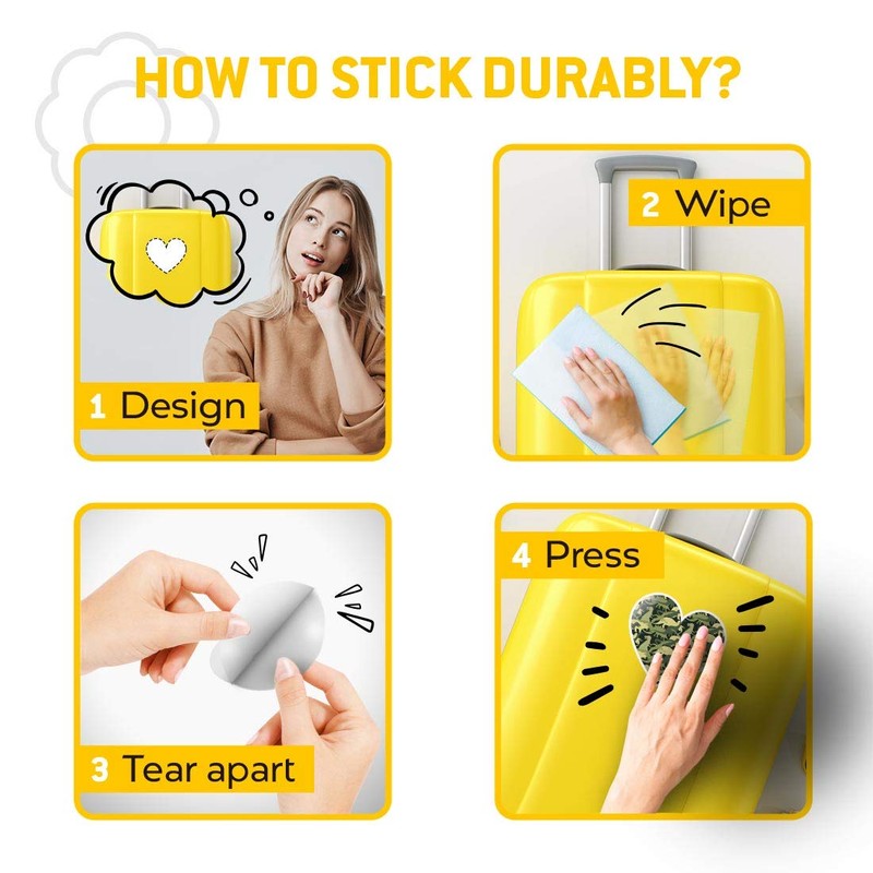 - THESE STICKERS ARE IDEAL - for laptops, tablets, luggage, scrap booking, bedroom walls, fridges, cars, motorbikes, tool box's and other flat and smooth surfaces.