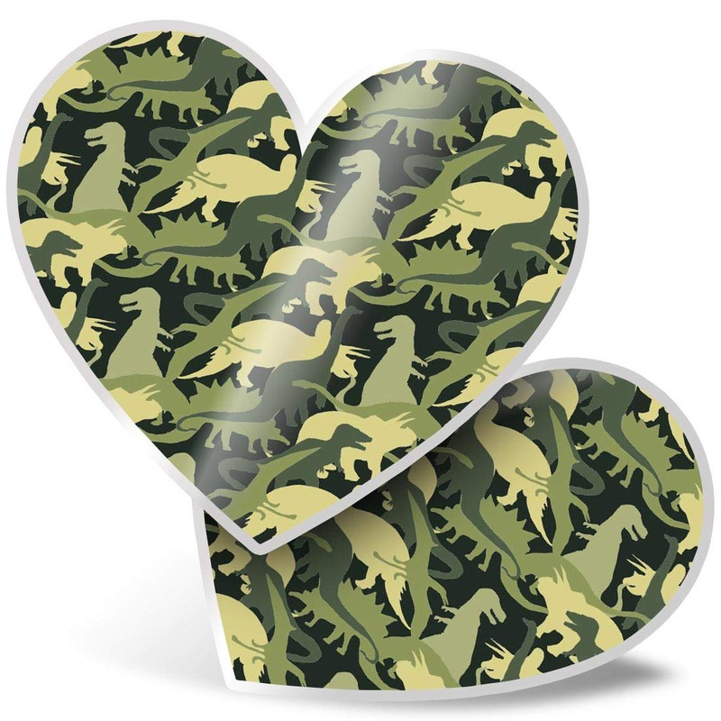 2 x Heart Vinyl Stickers 7.5 cm - Green Dinosaurs Camo Dinosaur 14451