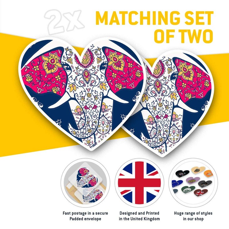 2 x Herz-Aufkleber 15 cm – Mandala-Elefant im indischen Stil, lustige Aufkleber für Laptops, Tablets, Gepäck, Scrapbooking, Kühlschränke, 2852