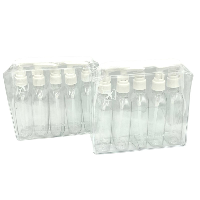 2 x Holiday Travel Clear Plastic Bottles Packs - 10 x 100 ml Pump Bottles & 2 x Clear Zip Bags