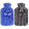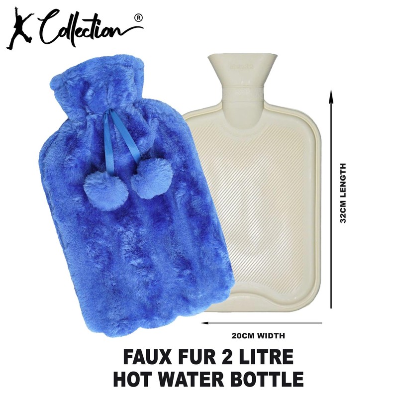- 2 PACK: 2 Litre Hot Water Bottles by K Collection with gorgeous Luxury soft and cosy Faux Fur Cover with Pom Pom Tie. Removable Faux Fur Cover with Rubber Hot Water Bottle (Conforms to British Standards BS1970 : 2012) is an ideal cosy companion to combat the cold this winter, best of all you receive a Pack of 2, Available in Mink/Purple or Blue/Grey Colour Packs, Amazing Value!